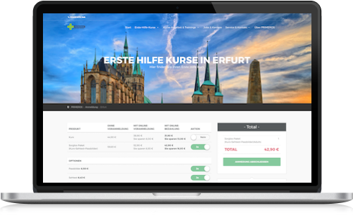 Die Anmeldung zum Erste-Hilfe-Kurs bei PRIMEROS geht spielend einfach: Mit ein paar Mausklicks sicherst Du Dir Deinen Platz im Erste-Hilfe-Kurs. Und: Bei Online-Anmeldung winkt noch ein satter Rabatt: